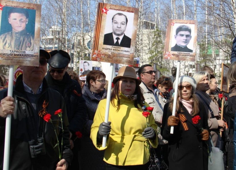 По окончании торжественной церемонии парада Победы югорчане друг за другом выстроились в колонну «Бессмертного полка» и с фотографиями родственников, принимавших участие в Великой Отечественной войне, прошествовали в Парк Победы, где возложили цветы к Вечному огню Мемориала Славы, отдав дань большого уважения всем тем людям, кто героически сражался на самых разных фронтах и погиб за нашу Родину.