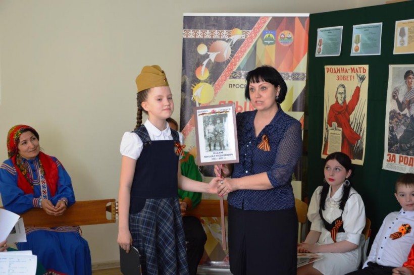 Сегодня была проведена «Эстафета памяти: Мы помним! Мы гордимся!». Это была встреча людей старшего и младшего поколения, в ходе которой старшие делились воспоминаниями о героях войны, о трудностях тех суровых лет, а молодые исполняли патриотические стихи и песни на слова Андрея Тарханова, Марии Волдиной, Роберта Рождественского и др.