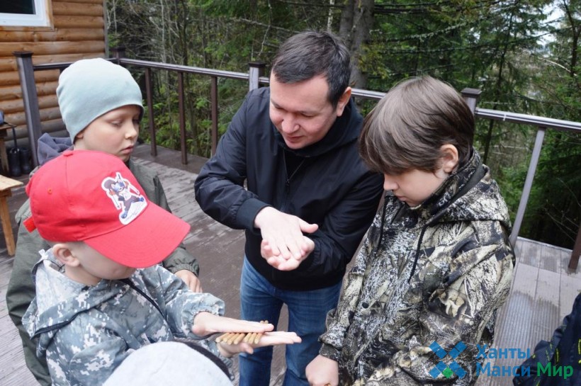 Практические занятия для ребят школьного возраста на главной открытой экспозиции проводит заведующий сектором музейных программ и проектов музея «Торум Маа» Вячеслав Кондин. Это человек, который с детских лет впитал в себя навыки выживания в таёжных условиях и по сей день не теряет связь с родной природой.
