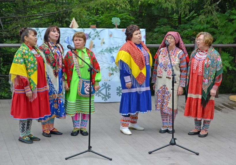 Концертная программа завершилась общей красочной фотографией. Яркие наряды выступающих украсили праздник. Гости, которые впервые увидели традиционные наряды обских угров, отметили, что, живя на суровом севере, ханты, манси и ненцы смогли умело вписать яркие краски природы в свои наряды.
