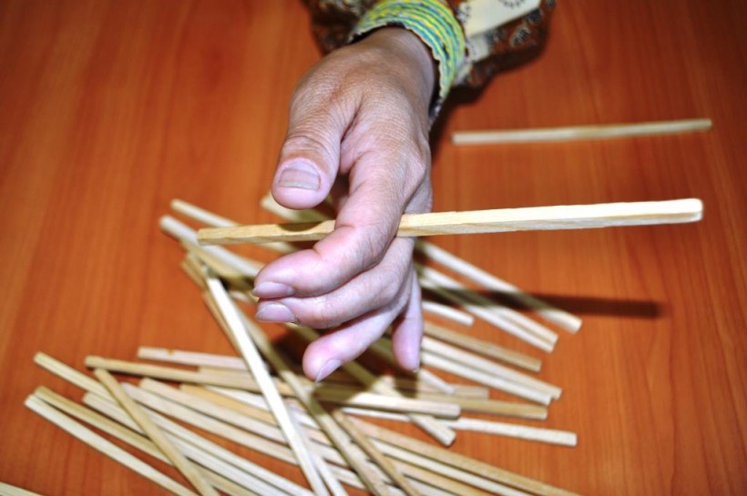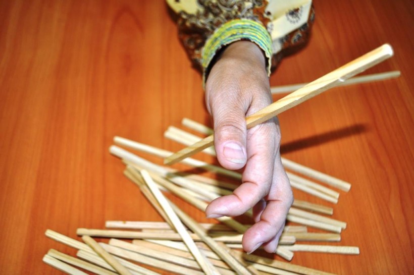 Другие продолжают играть одной палочкой, также как и предыдущий игрок, подбрасывая тыльной стороной руки и ловя поочередно между пальцами.