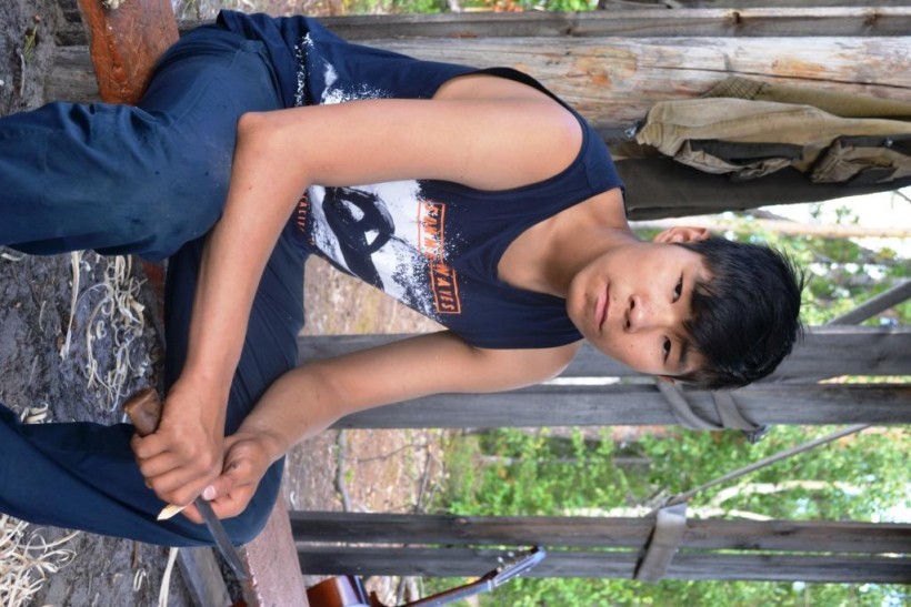 – Предыдущая смена была юбилейной. Мне здесь нравится абсолютно всё. Я ежегодный участник детского стойбища, 9-й раз приезжаю сюда. Участвую в сценках из «Медвежьих игрищ», на «нарсъюхе» играю потихоньку. Танцам нас обучает Олег и Дима Тарлины, игре на традиционных инструментах – Олег и Катя Потпот. Очень нравится с деревом работать, сейчас делаю стрелы.