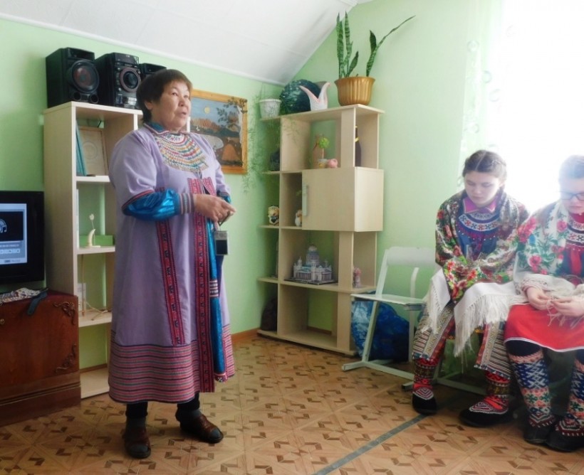 Главная гостья посиделок – представительница сразу двух народов ханты и манси из рода Лысковых или рода Шишки – хранителей священных ларцов Богини Калтащ Ими – Любовь Васильевна Кашлатова (Ендырева). Л.В. Кашлатова, кандидат культурологических наук, начальник Берёзовского филиала Фольклорного центра Обско-угорского института прикладных исследований и разработок, более 20 лет занимающаяся исследовательской деятельностью. Как и полагается научному сотруднику, Любовь Васильевна – постоянная участница различных районных, окружных, региональных, всероссийских научно-практических конференций, семинаров-практикумов и других научных площадок.