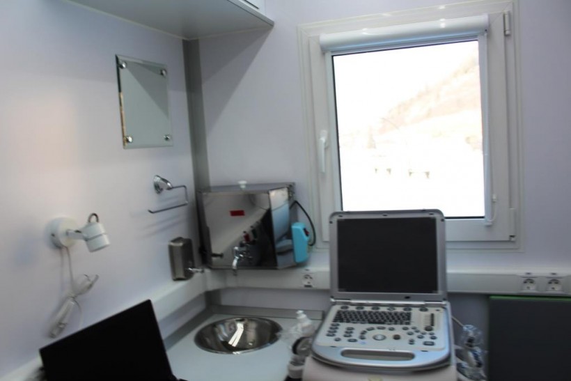 Автомобильный модуль включает в себя рентгеновские, маммографические установки, в них оборудованы УЗИ-кабинеты, лаборатории, гинекологические кабинеты.
