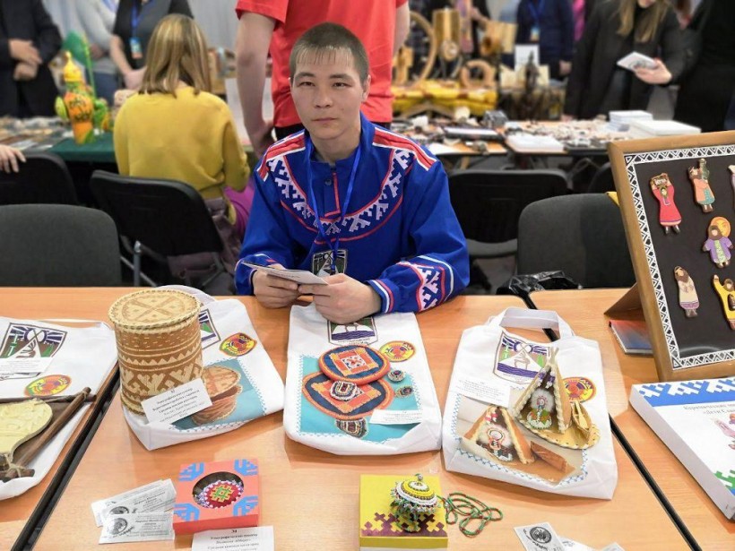 народа ханты – нарты, рыболовную снасть «мордушку», вёсла, старинные инструменты – рубанки, ручные свёрла и др. Принимает активное участие в семинарах по изготовлению предметов быта из дерева, а также в различных конкурсах. В апреле 2019 года принял участие в VII Международном туристском форуме «Большой Урал» в Екатеринбурге. Занял 1 место в высокой ценовой категории в номинации «Этнографический сувенир». «На конкурсе я представлял работу «Панно «Охотник». На картине размером «50х30» представлено стойбище, где расположены два чума, костёр, на переднем плане лось, лес, охотник на подволоках. Все мои работы имеют сюжеты. Глядя на них, можно узнать многое о жизни и быте коренных малочисленных народов Севера. Использую материал дерева кедра», – говорит Денис Кельмин.