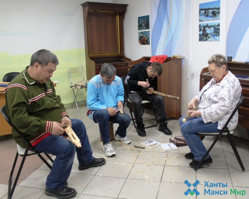 – Сегодня мы изготавливаем сувенирный свадебный посох, который самым первым отправлялся с гонцами. На нём жених делает рисунки-зарубки. По нему родители невесты определяли, из кого он рода, чем занимается, например, изображение рыб и птиц говорит о женихе-рыбаке-охотнике. Также на этом посохе изображается количественный состав его семьи. Этот подарочный посох – своего рода рассказ жениха о себе. Если невесте понравился посох, она оставляет его себе, если нет, то возвращает с гонцами. В случае согласия, гонцы говорят жениху, что девушка согласна выйти на него замуж.