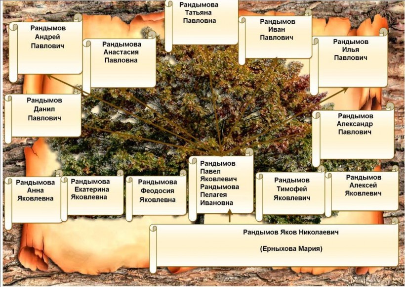 Киникайн хӑншман вәӆ Павел Яковлевич па Пелагея Ивановна Рандымовңӑн хоттєӆ ёх оӆӑңӑн. Ӆын вет пух па кӑт эви тӑйсӑңӑн: Даниил, Анастасия, Андрей, Татьяна, Илья, Иван па Александр. Ӆыв вәна ювмеӆн муй иса вєрты хошсӑт – хот омӑсты, кәр вєрты, мосты пурмӑс ӆэщӑтты, муӆты ёнтӑсты… Иса хуятӑт хотӑңа йисӑт, кашӑң семьяйн няврємӑт сєма питсӑт. Ар оӆ мӑнӑс щи пура вўш эвӑӆт.