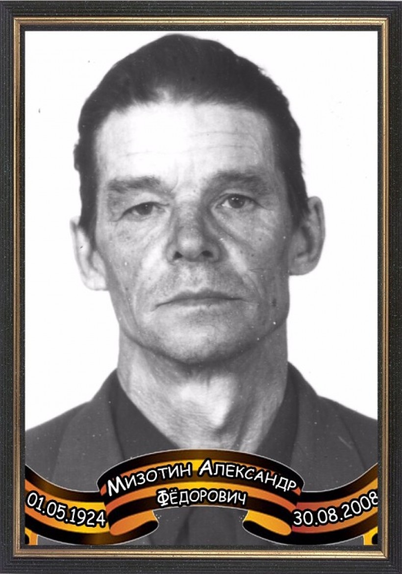 В нашем селе также жил фронтовик Александр Фёдорович Мизотин, который в 90-ых годах переехал в г. Тюмень. Сегодня здесь проживает его дочь Лариса Александровна Пуртова со своей семьёй. А.Ф. Мизотин родился 1 мая 1924 года, он – уроженец г. Тюмени. Окончил курсы младших командиров в г. Куйбышеве, в апреле 1943 года был направлен на фронт. Гвардий рядовой, стрелок 176 стрелкового полка 156 гв. стрелковой дивизии. Участвовал в боях в районе р. Северный Донец, за г. Белгород, был тяжело ранен, 28 ноября 1943 года был демобилизован. Награждён медалью «За победу над Германией в Великой Отечественной войне 1941- 1945 гг.». Инвалид войны. Вернулся в Тюмень, в 1946 г. окончил торгово-кооперативную школу в г. Салехарде, после чего приехал в с. Азовы, работал в рыбкоопе рыбаком и заготовителем пушнины. В апреле 1985 г. награждён орденом Отечественной войны I ст., в 1995 г. награждён медалью Жукова. Умер 30 августа 2008 г., похоронен в г. Тюмени.