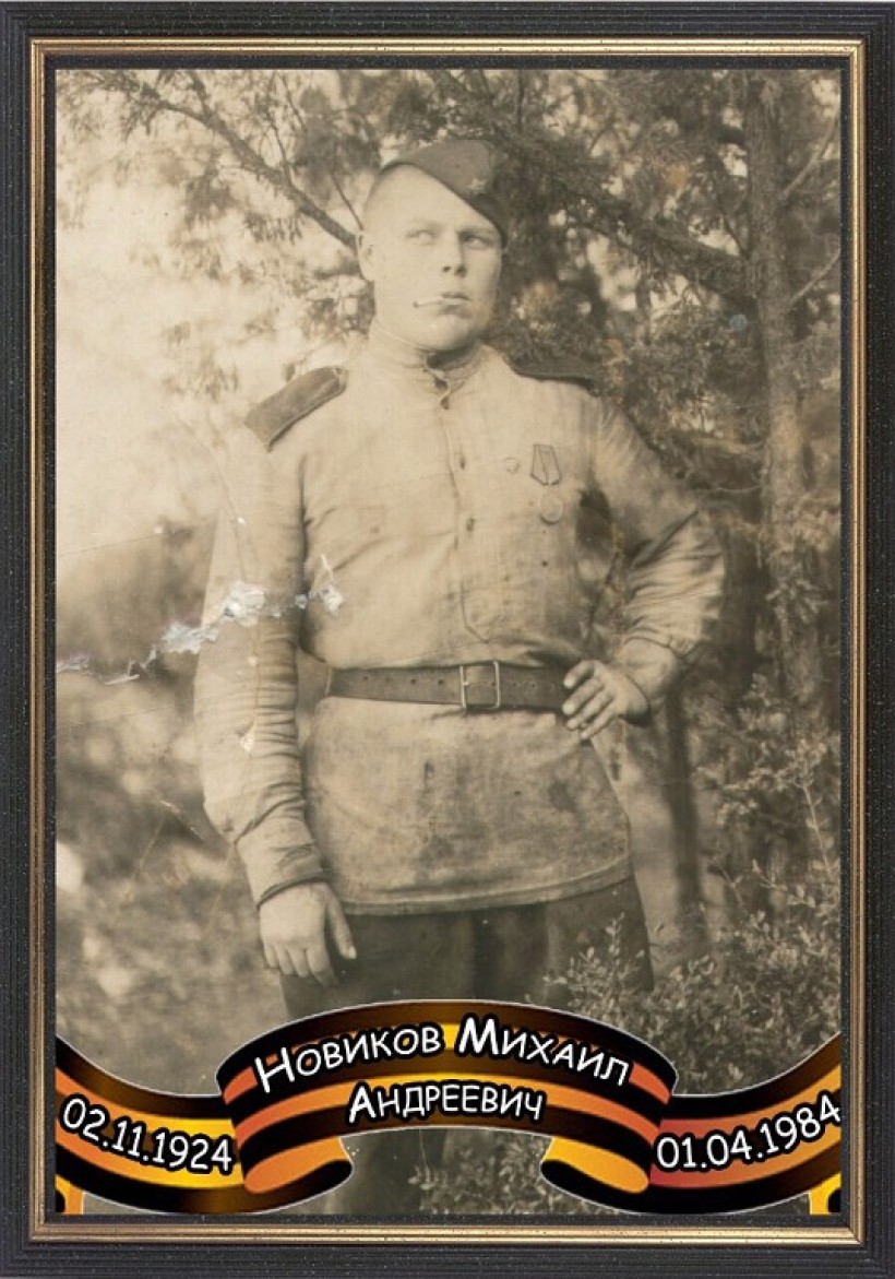 Мне хорошо запомнился 1984 год. Тогда я училась в 1 классе, в селе случилось несчастье – умер фронтовик Михаил Андреевич Новиков, мы хоронили его всем селом. Михаил Андреевич Новиков родился 1924 году в д. Ключевке Сосновского района Челябинской области. В 1942 году был призван в армию из Шурышкарского района. Проходил обучение в Севастопольском краснознамённом военно-морском училище, переведённом на Кавказ, затем на оз. Байкал, после окончания училища был направлен в г. Владивосток. Рядовой, телефонист 1014 артиллерийского полка 386 стрелковой дивизии, участвовал в рейдах в США на военном крейсере «Гроза». В 1945 году воевал на I Дальневосточном фронте, участвовал в боях в морских портах Хедзио (Корея) и Пхеньяна (Китай), во взятии Халхин-Гола. 20 сентября 1945 года был награждён медалью «За отвагу», позже был второй раз награждён медалью «За отвагу», также был награждён медалями «За победу над Германией в Великой Отечественной войне 1941 – 1945 гг.», «За победу над Японией». В 1947 году был демобилизован, вернулся в село Азовы, работал главным зоотехником, а затем завхозом школы.