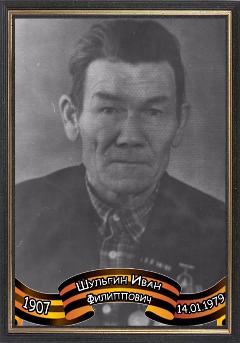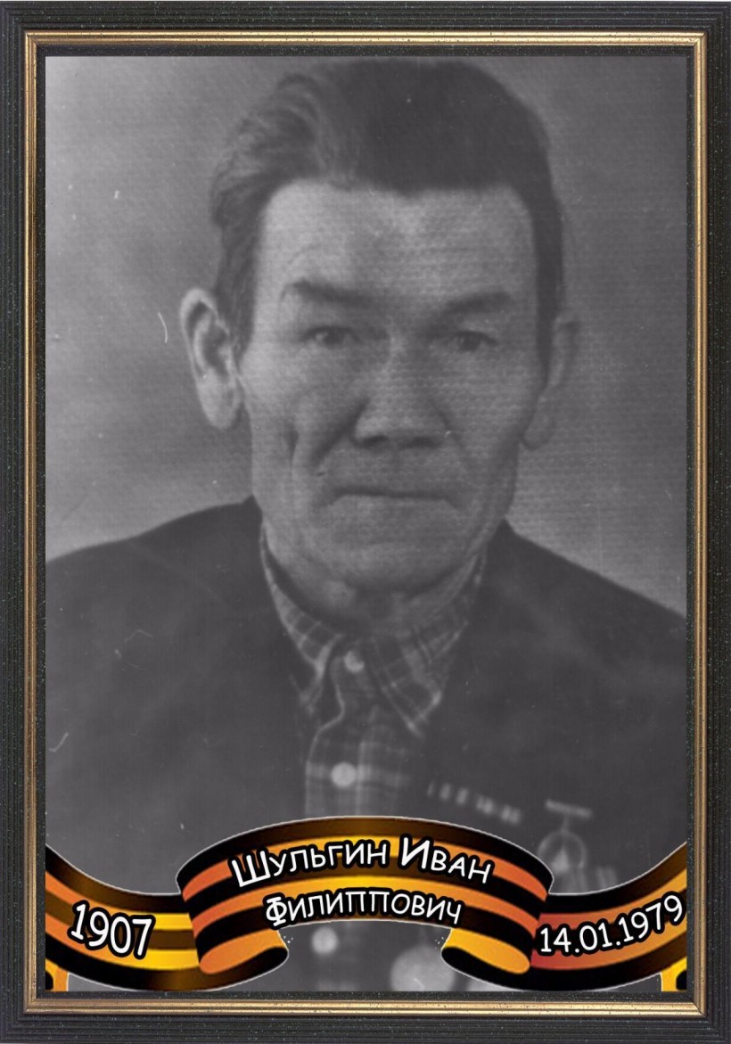 Шульгин Иван Филиппович, 1907 г.р., призван на войну 14 июня 1942 г., рядовой, стрелок-снайпер, участвовал в боях под Ленинградом, победу встречал в Кёнигсберге, в августе 1945 г. принимал участие в боях на Дальневосточном фронте, демобилизован в 1945 г., имеет боевые награды.