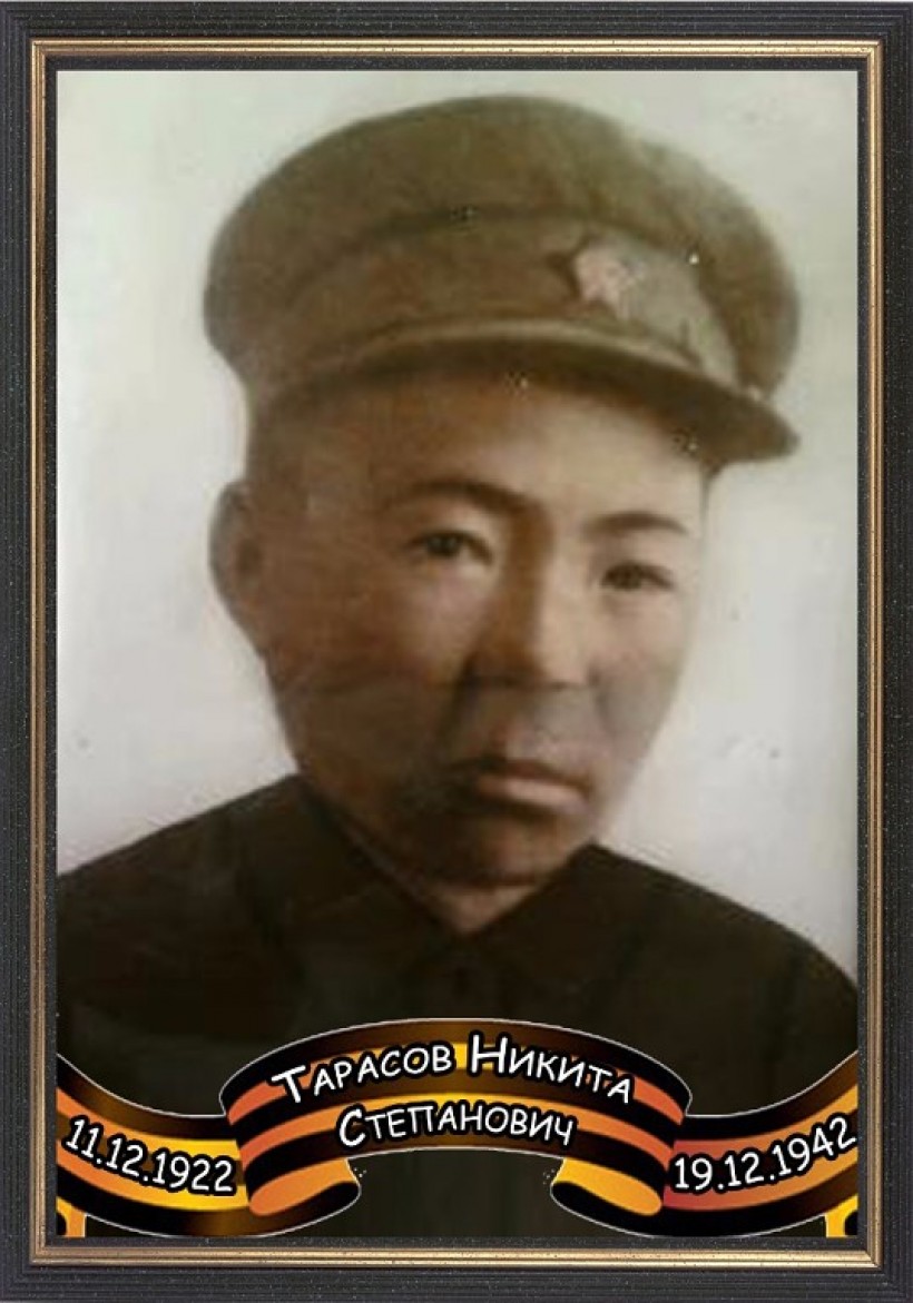 Тарасов Никита Степанович, 11.12.1922 г.р., учился в зооветтехникуме в г. Салехарде, в июле 1941 года был направлен в Омск для обучения в артиллерийской школе, в декабре 1941 г. ворошиловским стрелком был направлен в стрелковую дивизию войск РККА (Рабоче-крестьянской Красной армии), участвовал в боях за Москву, погиб во время Сталинградской битвы 19 декабря 1942 г., похоронен в братской могиле на хуторе Верхне-Кумской Волгоградской области.
