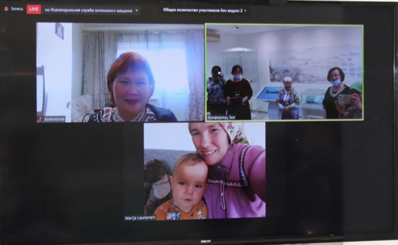 Директор музея «Торум Маа» Людмила Александровна Алфёрова в настоящее время находится в командировке в Берёзово, она и Любовь Васильевна Кашлатова в режиме онлайн поздравили Аграфену Семёновну с юбилеем.
