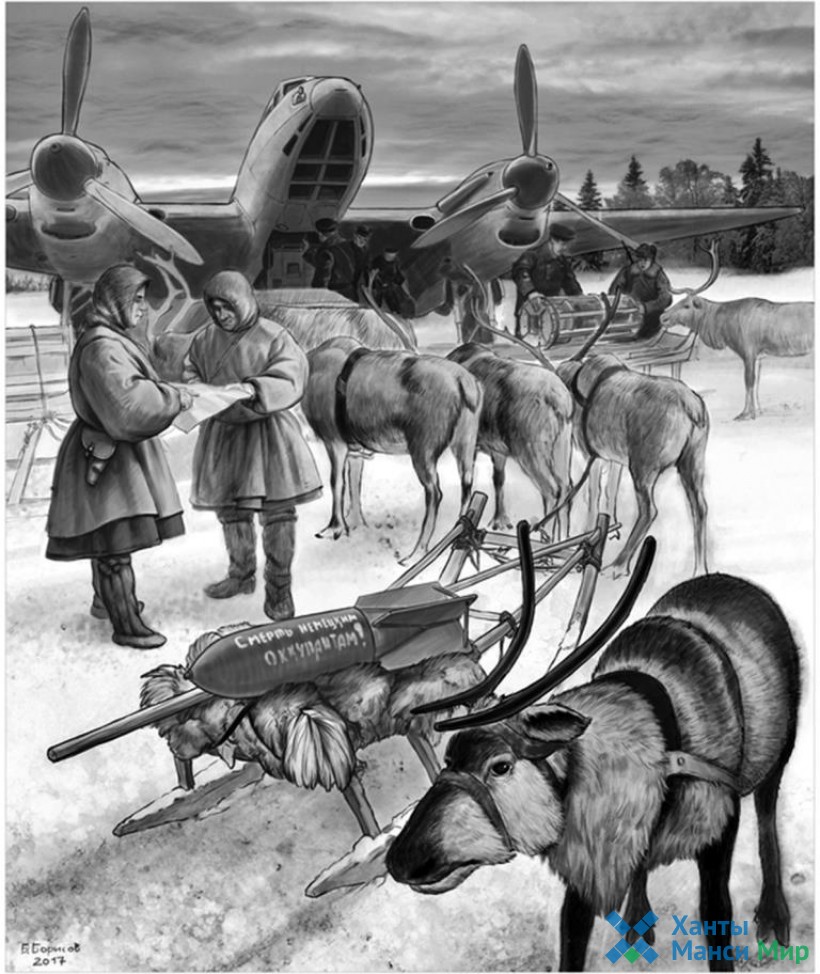 «Оленно-транспортные батальоны. В конце 1941 года для защиты северных рубежей Советского Союза на Карельском фронте поступил приказ сформировать оленно-транспортный батальон из числа местных жителей. К концу января 1942 года батальоны были сформированы. Своим ходом зимой им предстояло с оружием и припасами добраться до города Архангельска. Всего на фронт ушло четыре батальона. Задачей оленно-транспортных батальонов было доставлять на передовую грузы, в том числе продовольствие, оружие и снаряды, они также вытаскивали сбитые самолёты. В состав оленно-лыжных и оленно-транспортных батальонов пошли оленеводы – коренные жители Ненецкого автономного округа и Коми АССР. Всего с помощью оленей с линии фронта и из глубокого тыла противника было вывезено 10 142 тысячи раненых солдат. Оленные батальоны перевезли к переднему краю более 8 тысяч бойцов и 17 тысяч тонн боеприпасов».