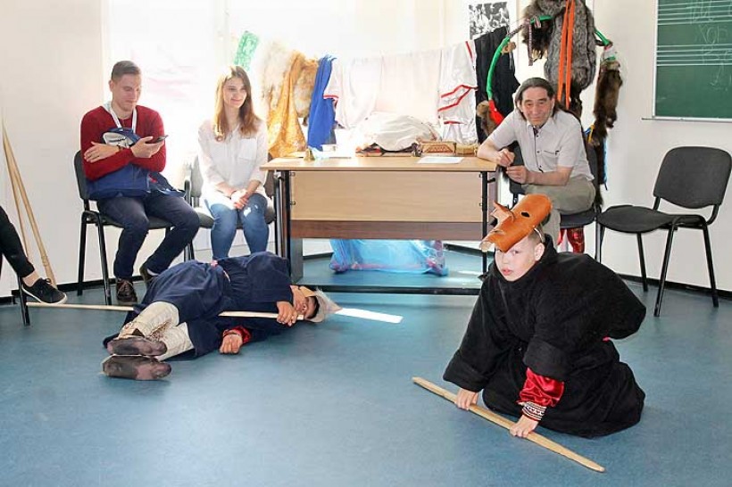 Сотрудники Окружного дома народного творчества на круглом столе рассказали о работе, которая ведётся в их учреждении для сохранения и развития культуры, языков обско-угорских народов. Тимофей Молданов является руководителем клубного формирования «Окружная школа Медвежьих игрищ», знатоком хантыйской культуры, носителем и исполнителем священных песен. При его непосредственном участии были проведены «Медвежьи игрища» на территории Белоярского, Сургутского районов, а также в городе Ханты-Мансийске. Сегодня по средствам сценок «тулыглапов» из священного действа Тимофей Молданов учит своих учеников хантыйскому языку, знакомит с богатым фольклором хантыйского народа. Тимофей Алексеевич рассказал, что в 1957 году в Белоярском районе на «Медвежьих игрищах» один из знатоков фольклора исполнил 480 песен. Сам он является исполнителем 90 священных песен и поэтому, сегодня его ученикам есть к чему учиться и к чему стремиться.