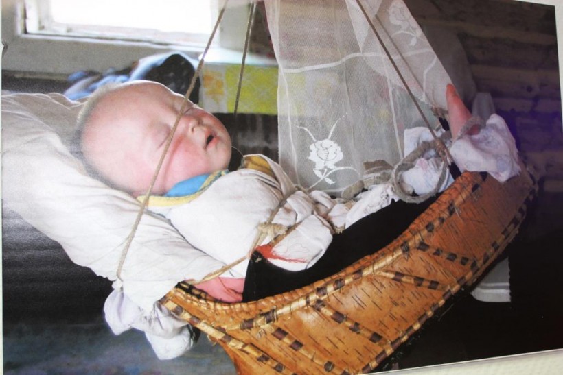 – В семье нас было десять детей. Я помню, как сама укладывала своих младших братьев и сестёр в эту колыбель и качала. Перед тем, как ребёнка уложить в люльку, сначала надо положить на дно древесную стружку из осины или сухую траву, которую собирали после спада воды на озере. Затем клали мягкую подушку, ребёнка укутывали одеялом и укладывали спать. Чтобы ребёнок не упал с колыбели, поперёк люльки затягивали верёвки, – поделилась своими воспоминаниями Людмила Калистратовна.