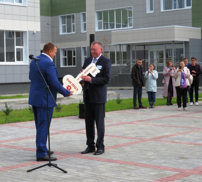 - Уважаемые родители, педагоги, школьники, поздравляю вас с Днём знаний! В праздник принято дарить подарки, и эта замечательная школа – это подарок вам, Ханты-Мансийску, Югре. У вас будет лаборатория искусства, у вас есть свой лес, где вы сможете получить навыки туриста, сможете создавать и реализовывать экологические проекты. В школе есть замечательная библиотека и, конечно, столовая. Берите всё, что мы вам передаём. Спасибо компании «Квартал», которая построила школу. Берите всё от этой школы, всё пригодится, пробуйте себя во всех начинаниях, потому что здесь все условия для работы и учёбы созданы.