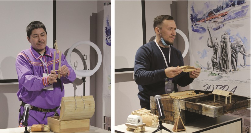 Сотрудники Ханты-Мансийского музея под открытым небом «Торум Маа» Анатолий Брусницин и Вячеслав Кондин провели презентацию-практикум «Волшебный сундучок «Музей на ладони: от музейных объектов до сувенирной продукции».
