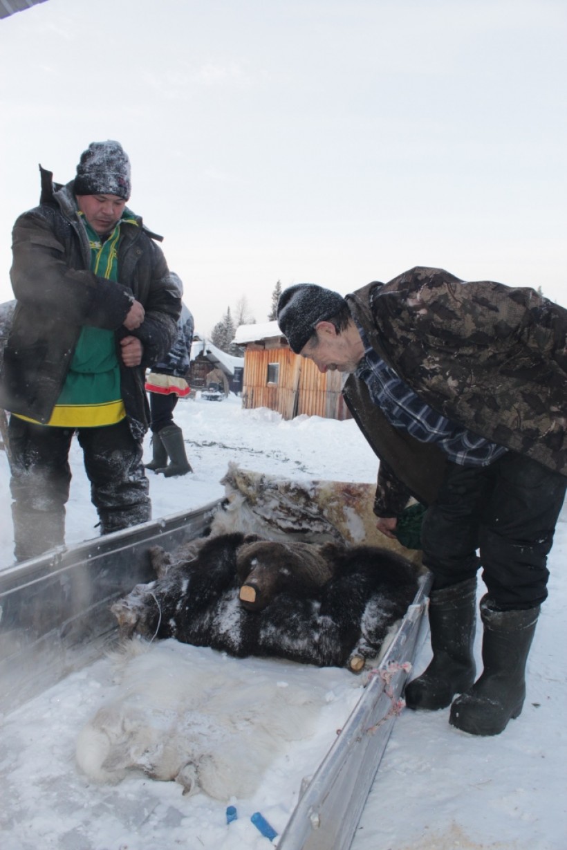 Савва, сын Алексей и племянник Дмитрий выследили медведя и добыли. Стоит отметить, что именно пулей Дмитрия, молодого охотника, был добыт хозяин тайги. Это был первый его большой трофей. По древним традициям для коренных жителей ханты и манси медведь приходится «младшим братом». И при его добыче устраивается празднование, готовят различные угощения, устраивают шуточные сценки в берестяных масках на лицах и в последний день проводят священный обряд с песнями и танцами. Таким образом, люди извиняются перед ним, просят прощения и говорят, что это не они добыли, а это ружье русского человека.