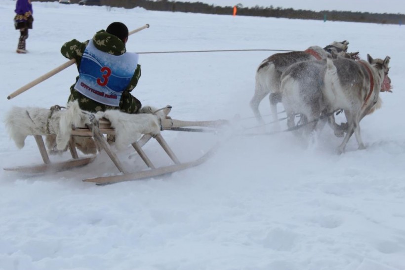 Одной из зрелищных и захватывающих частью праздника являются соревнования на оленьих упряжках. В этом году в оленьих гонках участвовали 28 мужских и 13 женских упряжек.