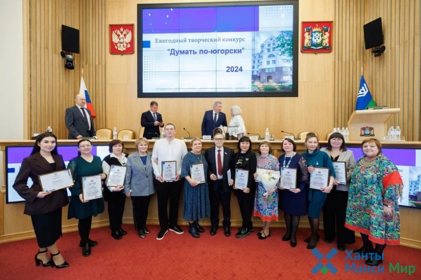 По окончании заседания Думы состоялась торжественная церемония награждения победителей ежегодного творческого конкурса «Думать по-югорски». В 2024 году на конкурс представили 96 работ от 50 журналистов и авторских коллективов из 12 муниципальных образований. Среди конкурсантов наши коллеги-манси поощрены специальными призами, работы редактора «Луима сэрипос» Людмилы Теткиной отмечены за оперативность и достоверность в освещении депутатской деятельности, а корреспондент радио «Югория» Любовь Мерова из рук председателя окружной Думы Бориса Хохрякова получила Диплом «За высокое качество журналистской работы». Другим журналистам национальной редакции были вручены дипломы за вклад в повышение уровня правовой культуры и информированности населения автономного округа в сфере законотворческой деятельности.