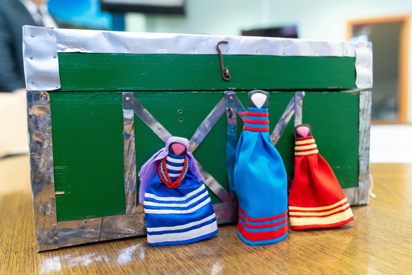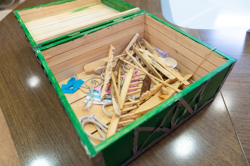 Первый сундучок у них появился с 9 предметами из фондов этнографического музея. Сотрудники музея обошли с ними несколько городских школ и детских садов. Затем, побывав в различных командировках автономного округа, они нашли другие традиционные предметы быта и одежду. Чтобы поместить некоторые вещи в сундук, нужно было изготовить их в миниатюре. Так Вячеслав Юрьевич сам смастерил охотничьи мини-лыжи, оленьи мини-нарты, лук и стрелы маленьких размеров.