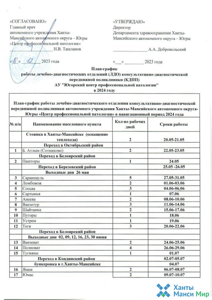 – К сожалению, летом мы полностью зависим от погодных условий. План на летний период уже сформирован департаментом здравоохранения округа, внесены корректировки. В виду того, что мы два года не можем попасть в Саранпауль из-за низкой воды, в этом году первый населенный пункт, это как раз Саранпауль. Начнем с Октябрьского района и потом поднимемся туда. В планах у нас 47-48 поселений, но все зависит от уровня воды, поэтому работу будем выстраивать по факту. Для врачей это стабильная работа, они сами называют ее выезд.