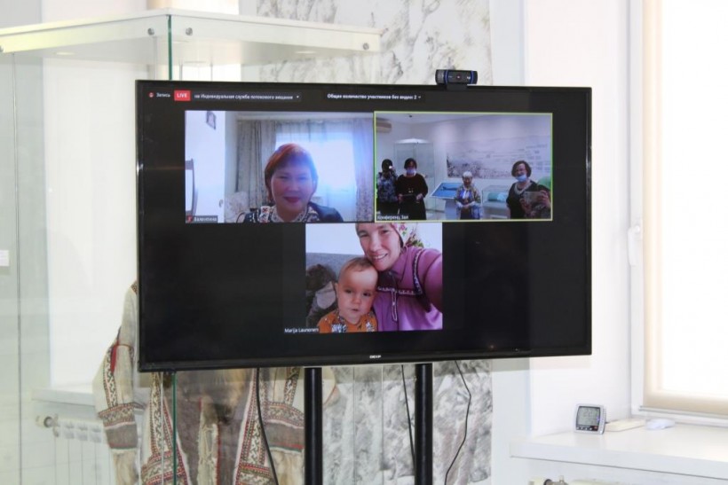 Директор музея «Торум Маа» Людмила Александровна Алфёрова в настоящее время находится в командировке в Берёзово, она и Любовь Васильевна Кашлатова в режиме онлайн поздравили Аграфену Семёновну с юбилеем.