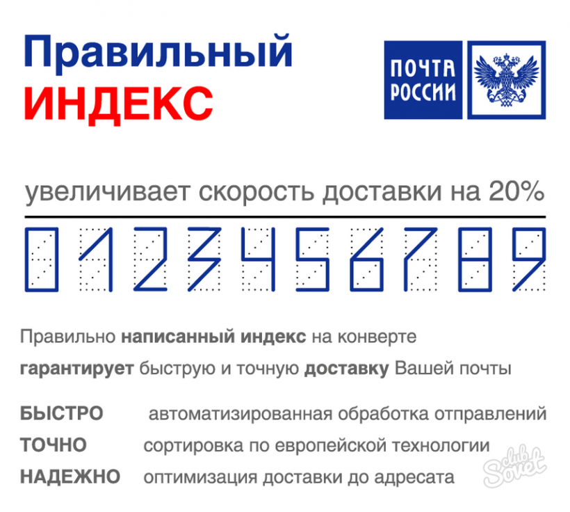 С внедрением современной технологии сортировки от правильности написания индекса зависит скорость обработки и доставки почтовых отправлений. Поэтому Почта России призывает пользователей услуг почтовой связи не игнорировать эту важную часть почтового адреса и писать ее в строгом соответствии с правилами. Уточнить почтовый индекс любого населенного пункта России можно на сайте Почты России: pochta.ru