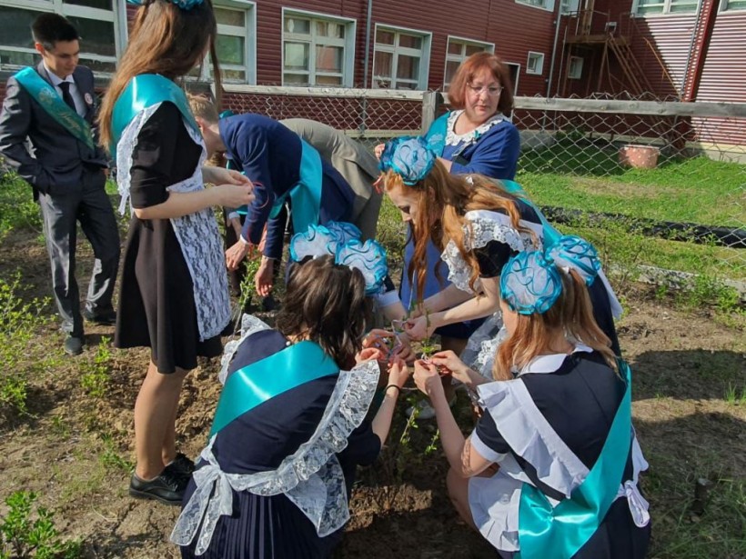 Выпускники Хулимсунтской школы Берёзовского района высадили саженцы на аллее выпускников. Мероприятие прошло 24 мая в рамках торжественной линейки, посвященной последнему звонку.