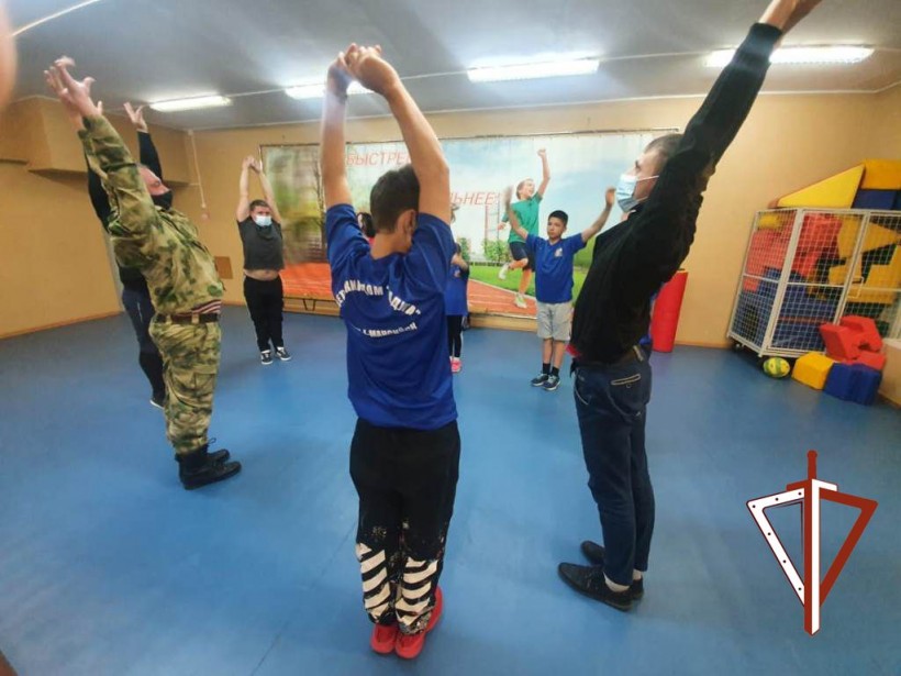 В Ханты-Мансийске накануне Международного дня защиты детей и начала летних школьных каникул военнослужащие и сотрудники территориального управления Росгвардии провели для воспитанников подшефного Центра помощи детям, оставшимся без попечения родителей, утреннюю зарядку и рассказали, при помощи каких упражнений сотрудникам ведомства удается поддерживаться себя в хорошей физической форме.