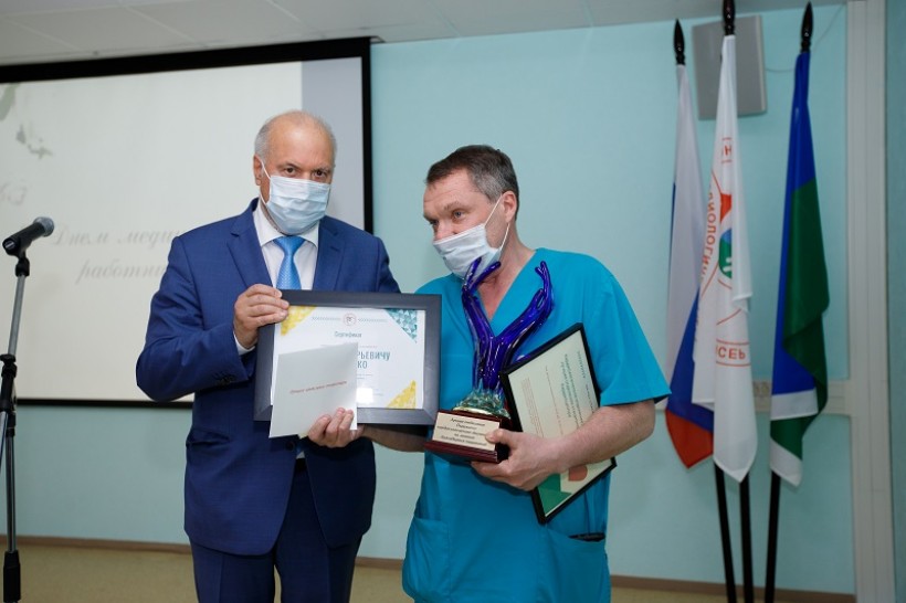 В праздничной церемонии приняли участие заместитель губернатора округа Вадим Шувалов, директор Департамента здравоохранения ХМАО-Югры Алексей Добровольский, заместитель Главы города Сургута Анна Томазова. Почетные гости поздравили коллектив кардиоцентра с профессиональным праздником, отметили важность и высокое качество работы медицинского персонала клиники. Вадим Николаевич вручил переходящую награду кардиоцентра – кубок. Он ежегодно присуждается отделению стационара, в адрес которого поступило наибольшее число положительных отзывов. Третий год подряд лидером в этой категории остаётся кардиологическое отделение №2. Лучшим подразделением поликлиники Кардиоцентра по мнению благодарных пациентов признано отделение лучевой диагностики.