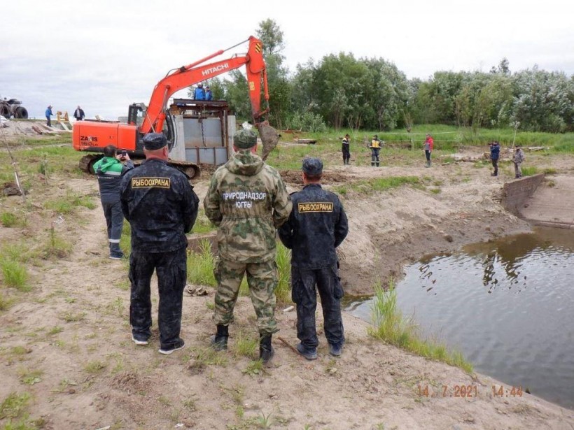 14 июля 2021 года Комиссией осуществлен контроль за выпуском АО «Югорский рыбоводный завод» молоди сиговых видов водных биоресурсов (муксун) в реку Иртыш из рыбопитомника (озера) Зимний Сор.