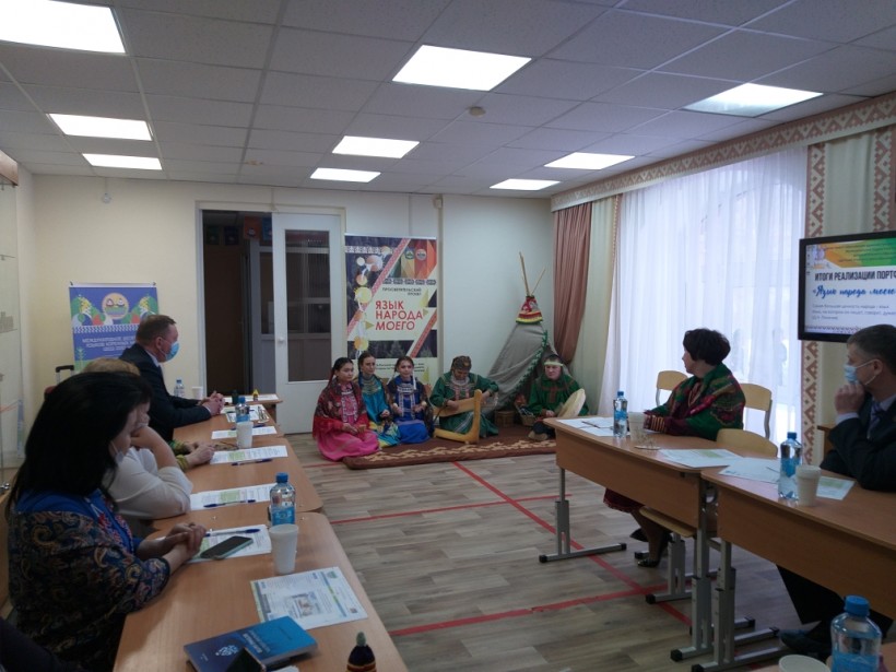 С этой постановкой они также приветствовали в Детском этнокультурно-образовательном центре участников круглого стола «Язык народа моего». Приглашённые специалисты в разных сферах деятельности обсудили проблемы и перспективы развития родных языков коренных народов Ханты-Мансийского автономного округа. Докладчиками была отмечена возможность утраты родных языков, необходимость консолидации всех сообществ в вопросах их сохранений. Было подчёркнуто, что в Югре ситуация особая, пока есть носители родных языков – языки чувствуют себя уверенно. В процессе сохранения языков необходима поддержка и взаимодействие всех органов власти и сообществ.