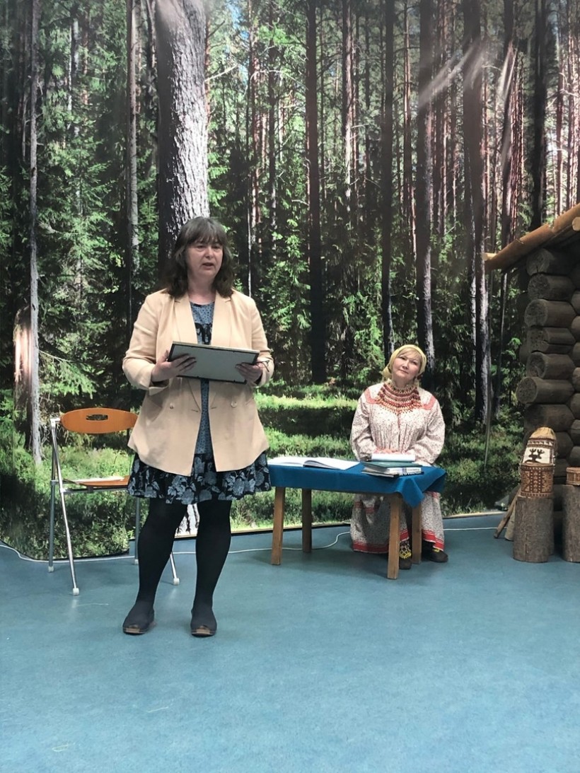 В завершение встречи директор Окружного Дома народного творчества Елена Евгеньевна Исламуратова поздравила Тимофея Алексеевича с 65-летием от имени сенатора Российской Федерации Александра Новьюхова и вручила благодарность за сохранение и популяризацию нематериального культурного наследия коренных малочисленных народов Севера.