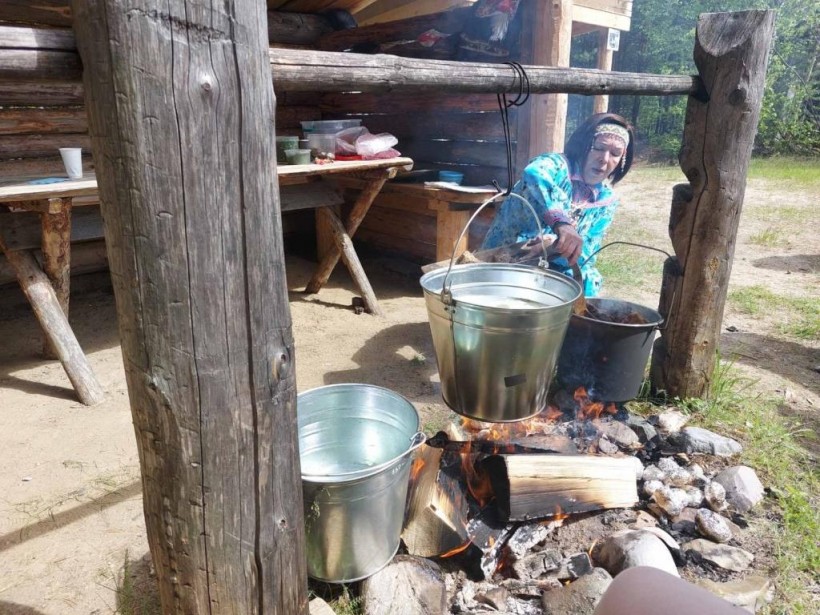 И, конечно же, в завершении праздника всех ждали вкусные угощения – это шурпа из оленины, запечённый карась, картофель на углях и сосьвинская селёдка по традиционному мансийскому рецепту, которую с большой радостью для гостей приготовила Татьяна Сысоева по рецепту своей тёти из деревни Анеева Берёзовского района.