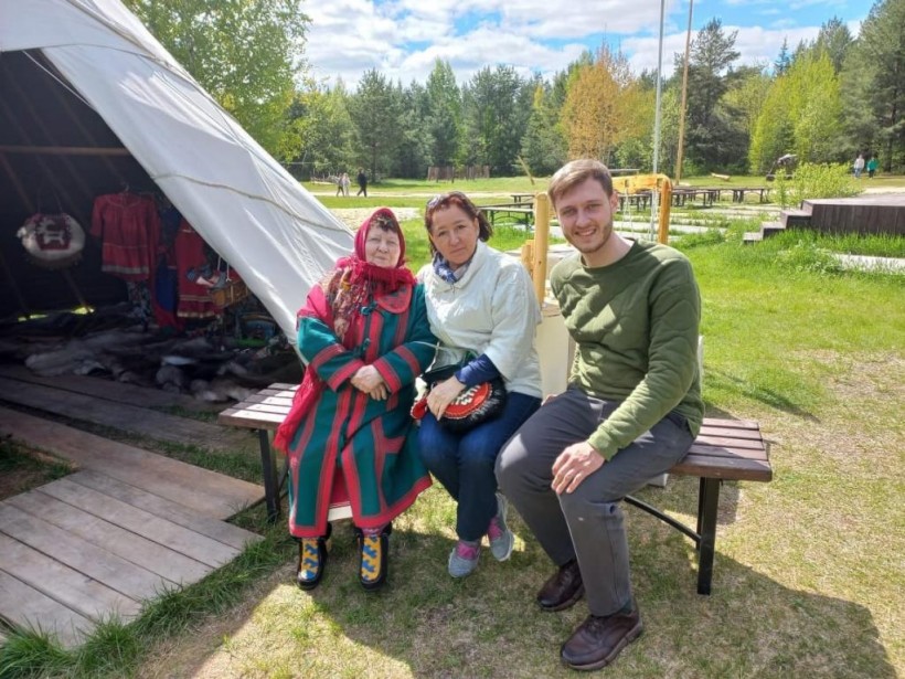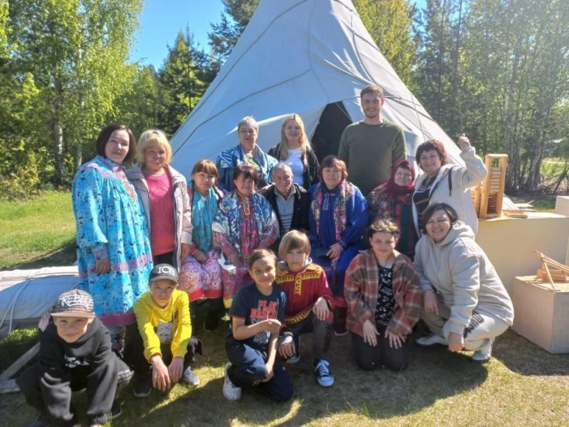 В чуме, что находится на территории музея, была представлена выставка из фондов музея истории этнографии города Югорска и работы мастерицы ДПИ Нины Георгиевны Руковой. На экспозиции она представила работы из рыбьей кожи, ткань по ткани. Нина Георгиевна исполнила песню и прочла свои стихотворения. Лилия Лапсуй из посёлка Таежного вместе с сыном Артёмом исполнили национальную песню.