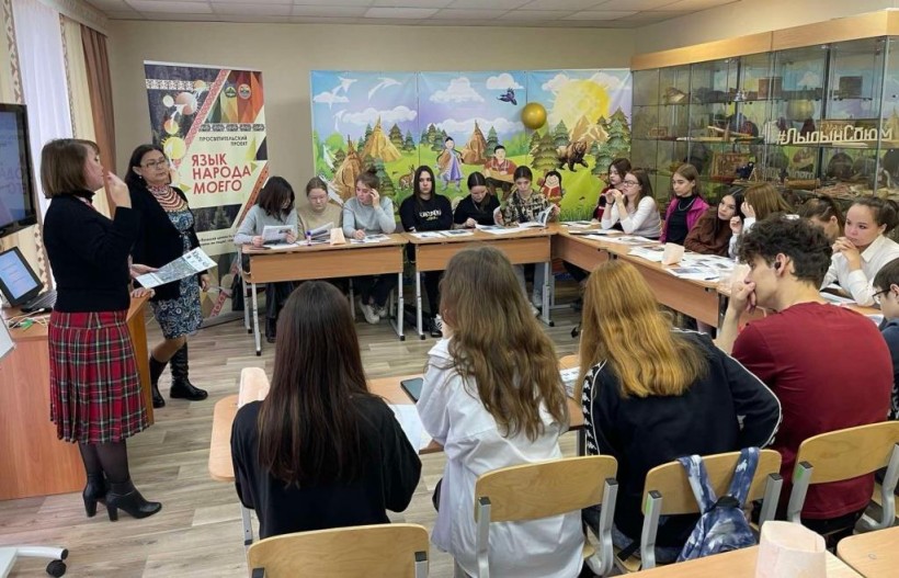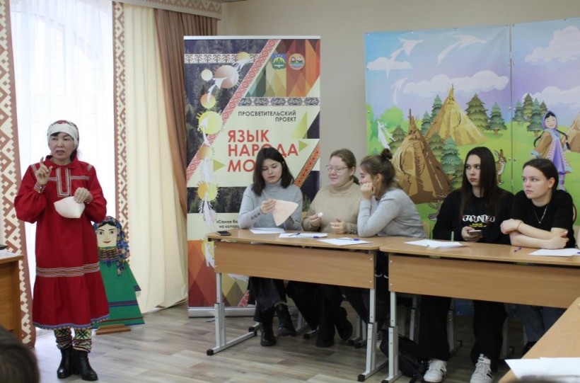 Журналисты Людмила Гурьева и Тамара Мерова познакомили студентов с газетами на хантыйском и мансийском языках «Ханты ясанг» и «Луима сэрипос», рассказали о работе журналистов национальной редакции, об особенностях интервьюирования коренных жителей, об этике, которую необходимо соблюдать при беседе, о чём можно спрашивать, а о чём нет и т.д. Также рассказали об опыте работы с детьми и молодёжью, в частности, о проекте «Юный корреспондент», который начался с 2015 года. Кроме этого, редакция ежегодно проводит творческие конкурсы, в настоящее время продолжается видеоконкурс «Сначала была сказка…». Студенты задавали вопросы, их интересовало, достойные ли зарплаты у журналистов национальной редакции. На что мы ответили, что по окружному закону, все специалисты округа, работающие по сохранению и популяризации родных языков коренных народов Югры, получают доплату в размере 25 %, это хороший стимул для работы и в нашей редакции.