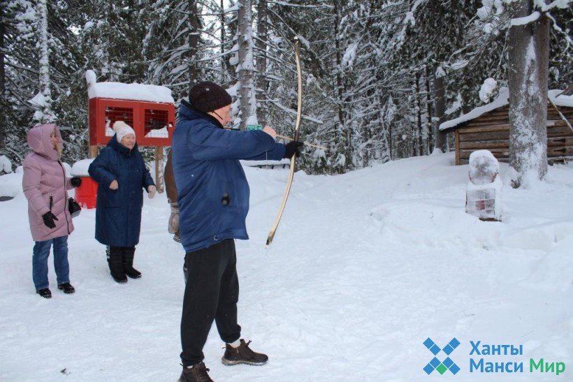 Гости музея также познакомились с бытом зимнего мансийского жилища. Экскурсовод показал и рассказал о ловушках на зверей, представленных на охотничьей тропе. Каждый имел возможность проверить свою меткость, пострелять из лука.