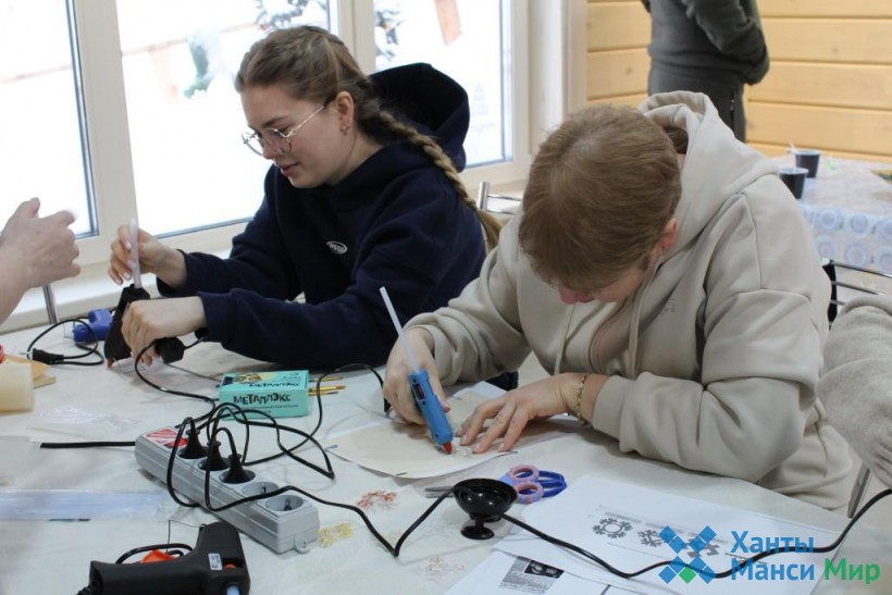 Хранитель музея Татьяна Конева (Зубакина) провела мастер-класс «Сказочный орнамент», где гости познакомились с орнаментами обских угров, узнали их значение и самостоятельно изготовили их на память при помощи клеевого пистолета.