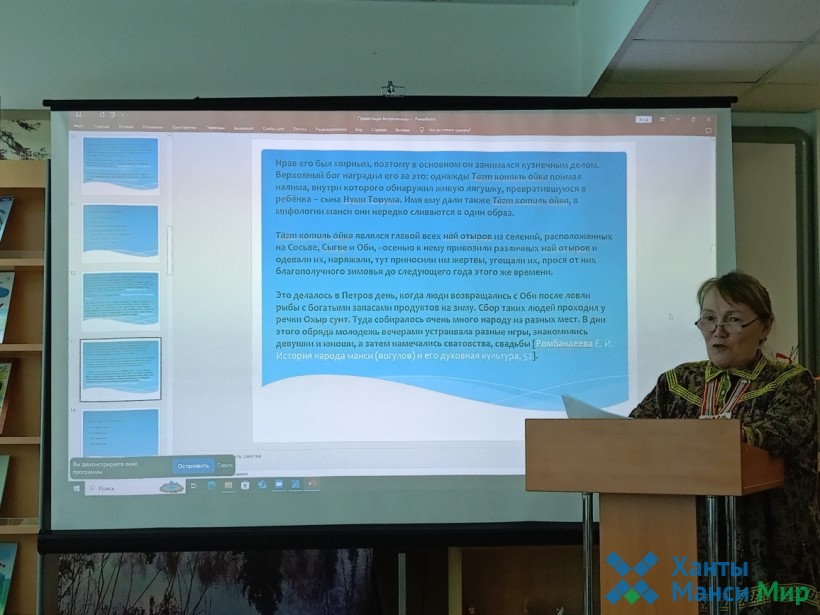 Сотрудники Обско-угорского института прикладных исследований и разработок почтили память двух учёных на научно-практическом семинаре, посвящённом регламентации мифологической и фольклорной антропонимики. О научной деятельности Е.И. Ромбандеевой и вкладе в изучение мансийских антропонимов рассказала старший научный сотрудник института Светлана Герасимова, тему антропонимии в обрядности северных манси в трудах В.С. Ивановой затронула кандидат филологических наук Светлана Динисламова.
