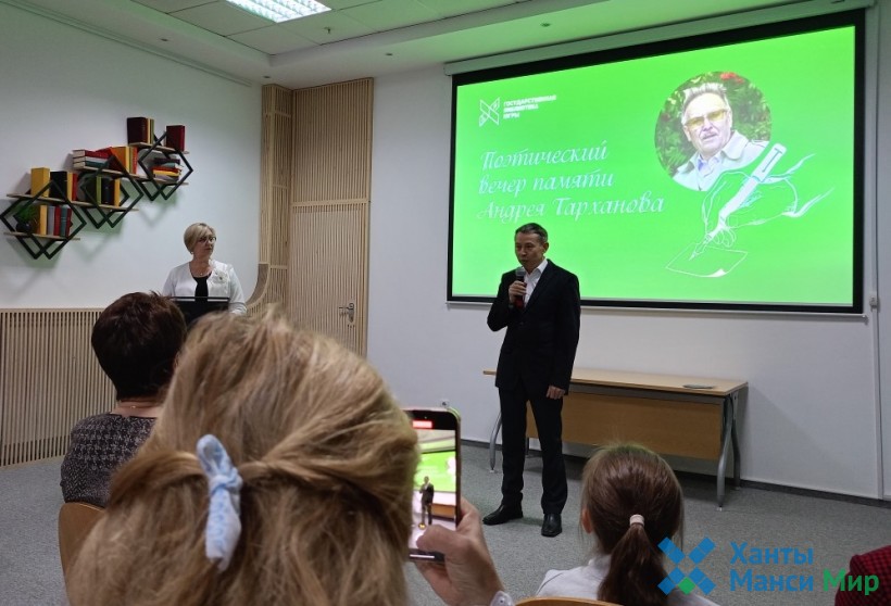 «Дорогие гости поэтического вечера, посвящённого памяти замечательного югорского поэта Андрея Семёновича Тарханова. Есть в нашем краю поэты, устами которых говорит и поёт сама родная земля. Таков Андрей Тарханов. Поэт, родившийся на югорской земле в семье охотника-манси. Родители сделали всё возможное, чтобы их сын получил достойное образование. После окончания Ханты-Мансийского педагогического училища в 1956 году Андрей Тарханов работал учителем Юмасинской семилетней школы Кондинского района. И там он писал свои первые стихи. Первое стихотворение было опубликовано в газете "Сталинская трибуна" в 1956 году, – с такой приветственной речью обратилась к друзьям, соратникам, родственникам поэта Елена Львовна Аушева, библиотекарь 1-й категории отдела краеведческой литературы и библиографии Государственной библиотеки Югры.