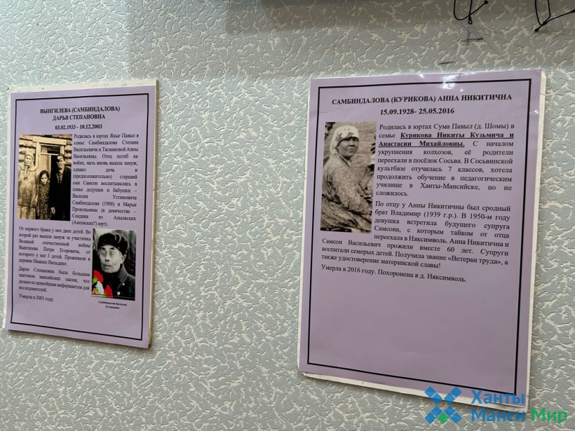 На экспозиции было представлено родословное древо мансийской семьи Самбиндаловых из с. Няксимволь, восстановленное на основе архивных источников и устных свидетельств.