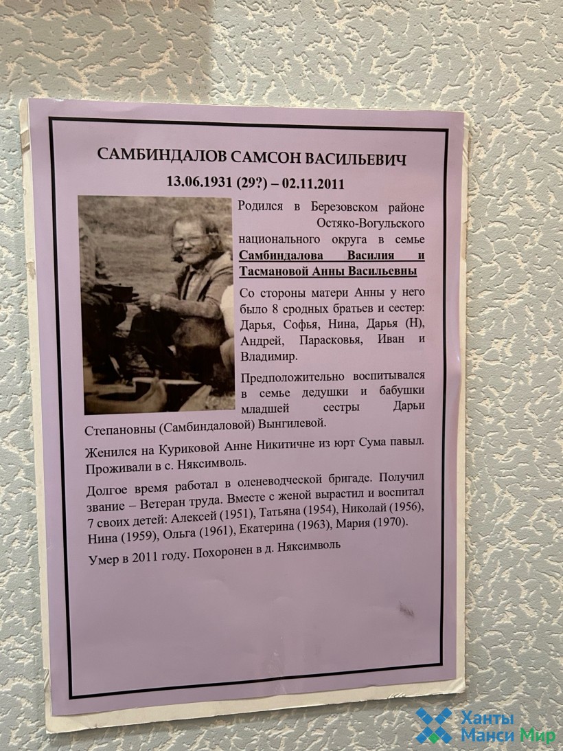 Суссылтапыт Нхщамвль пвлыт лум Самсон Васильевич Самбиндалов урыл потыртасыт. Мхумыт архив колыт тав щмья урыл нпакыт кинсасыт. Тувыл рӯтаныл китыгласыт.