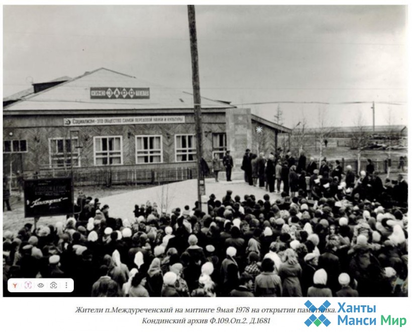 Ань лум сапрнит тит памятникыг урыл потыртасыт, тн Кондинский районт ллг. Куминский пвылт Победа хтал кастыл 1985 тлт тӯщтувес. Тот слтат хуритэ врим лы. Ос Междуреченский пвылт яныг хнтыт порслым мхум номнэ мгсыл 1978 тлт наманыл хансым хвтас врвес. Ты памятникыг сас налыман тлыл яныгнувег лг, сккон щирыл тн ӯргалаӈкве патавег.